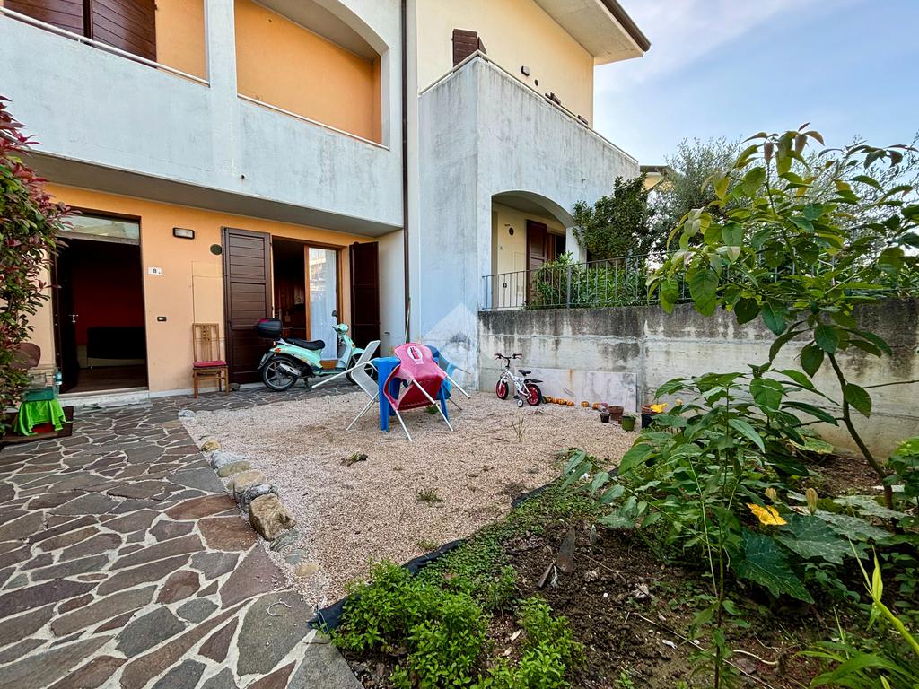 In contesto edificato nel 2002, in posizione che offre una spettacolare vista panoramica sulle colline circostanti, appartamento al piano terra con ingresso indipendente, giardino privato e garage collegato internamente.