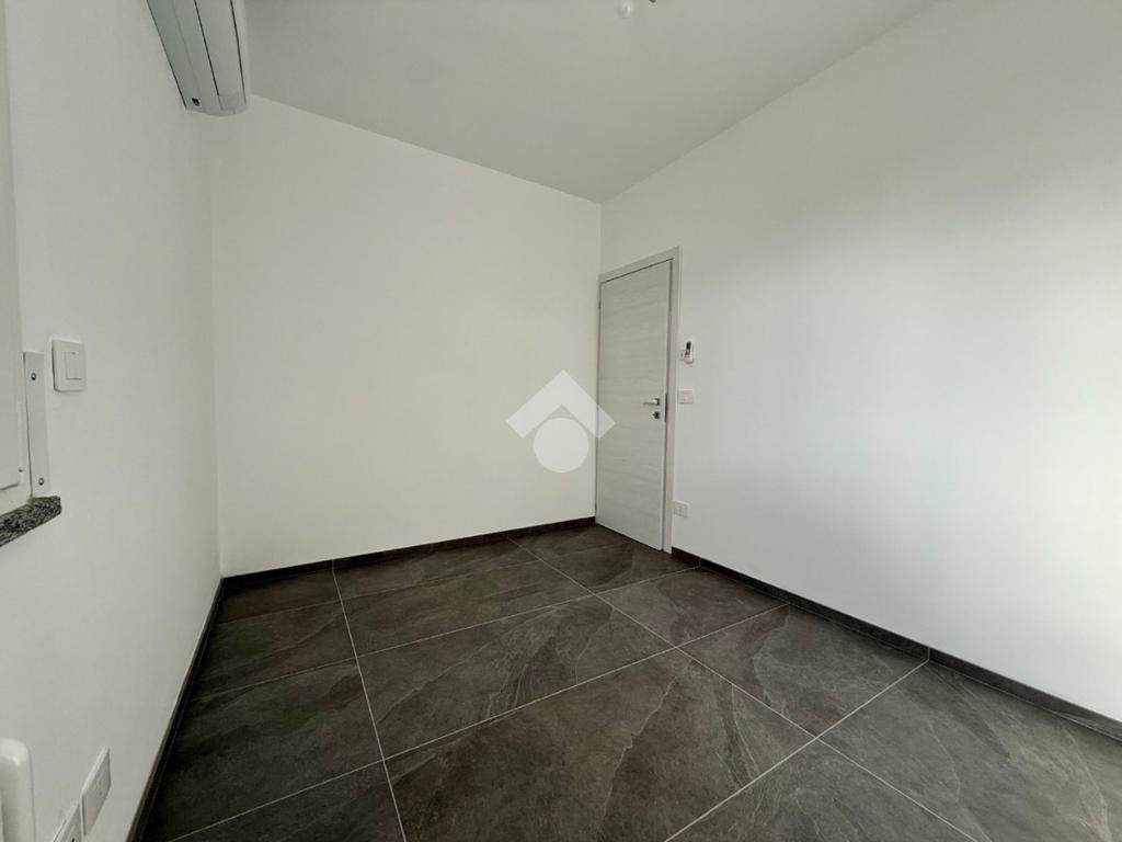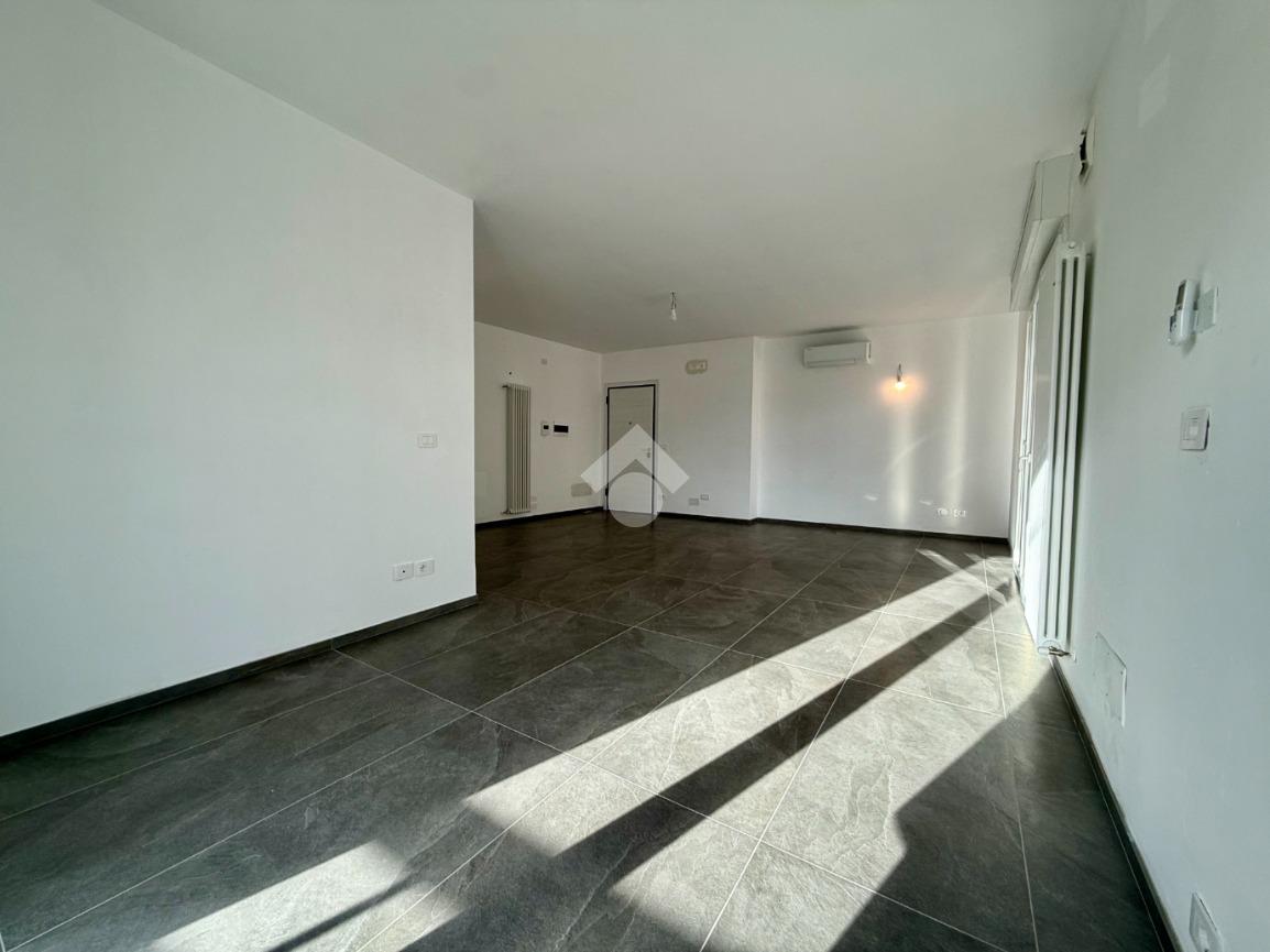 L'immobile, al primo piano servito da ascensore, accoglie in un ampio soggiorno con angolo cottura a vista, spazioso e ben organizzato.