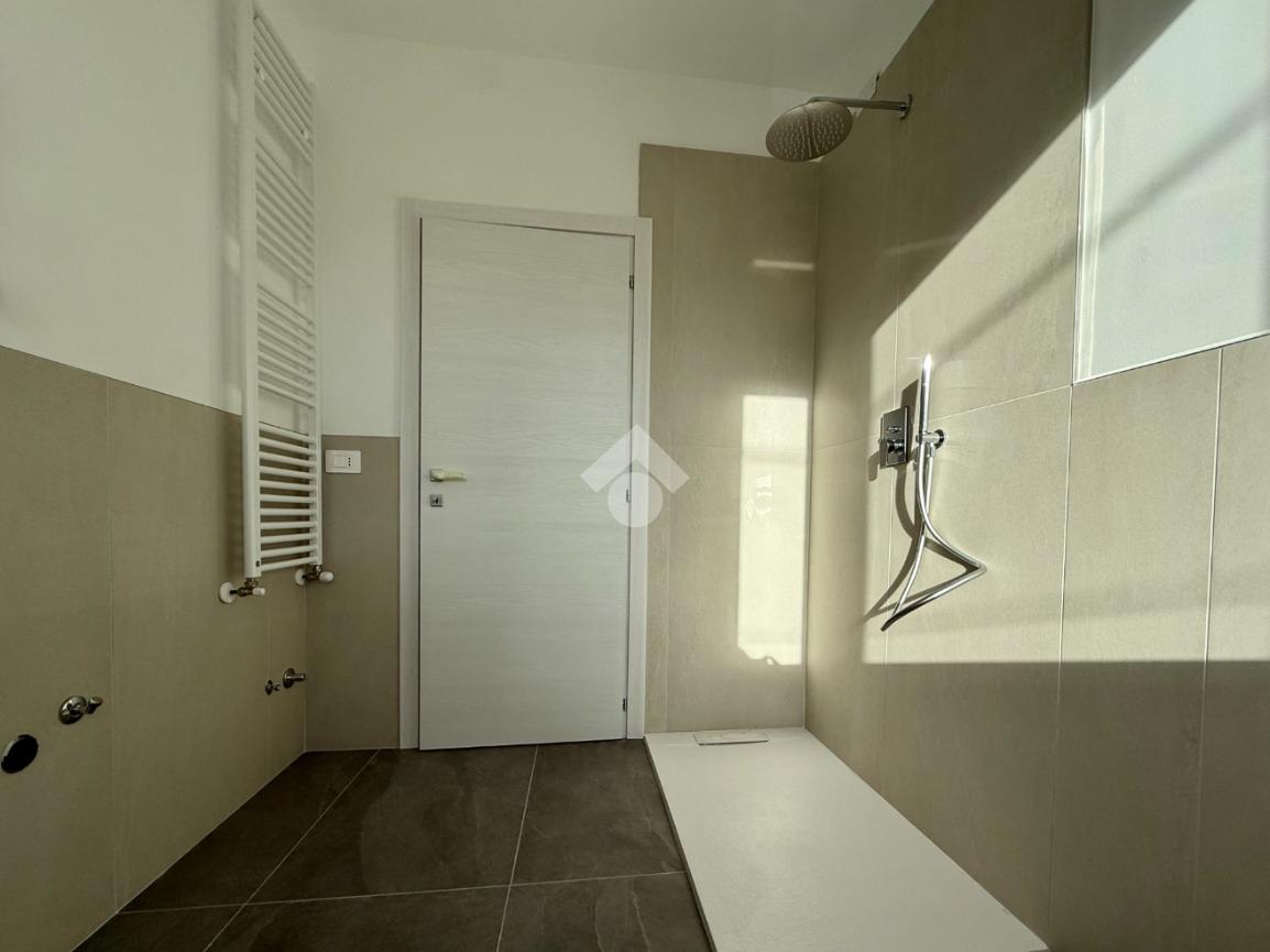 L'abitazione dispone inoltre di un garage privato di 21 mq, posto auto di proprietà e di un giardino condominiale.