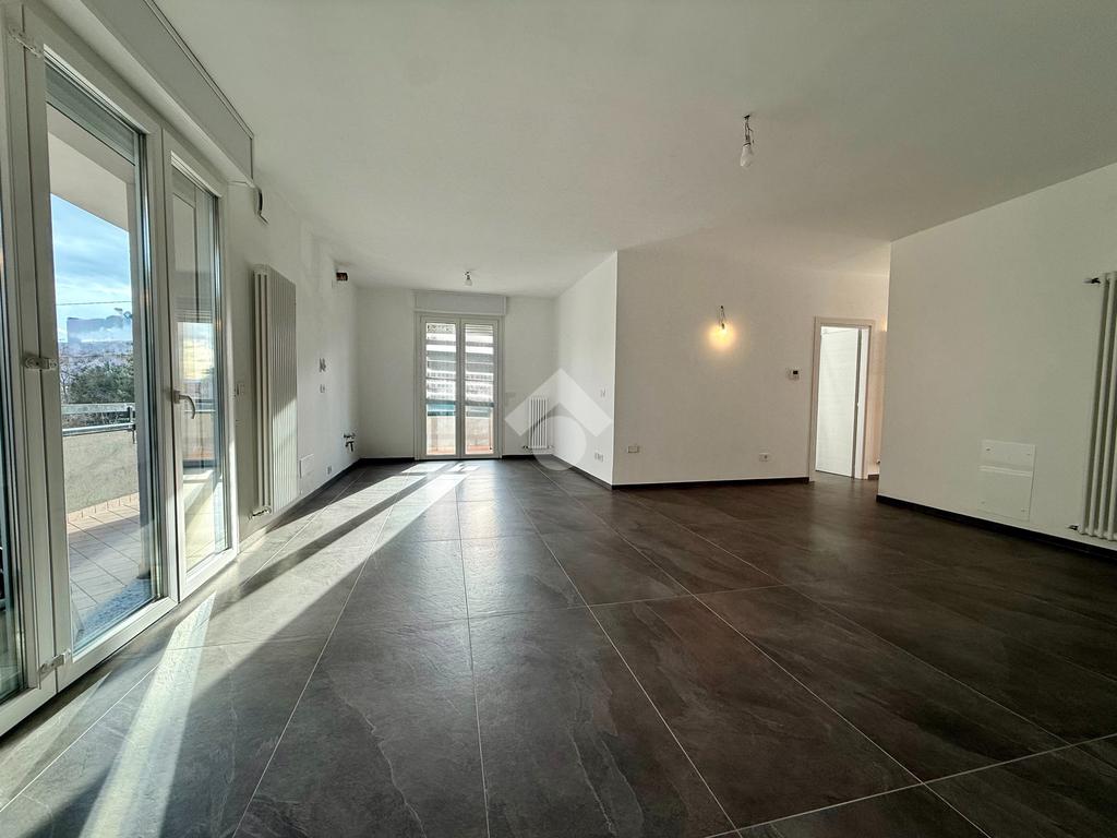 L'ambiente è caratterizzato inoltre da una splendida luce naturale grazie a due ampie portefinestre che consentono di raggiungere il balcone che circonda l'intero appartamento.