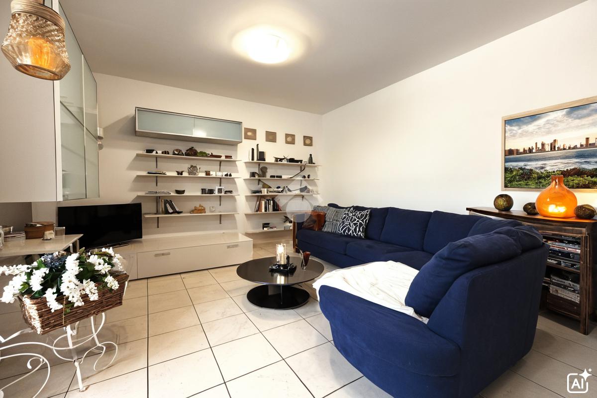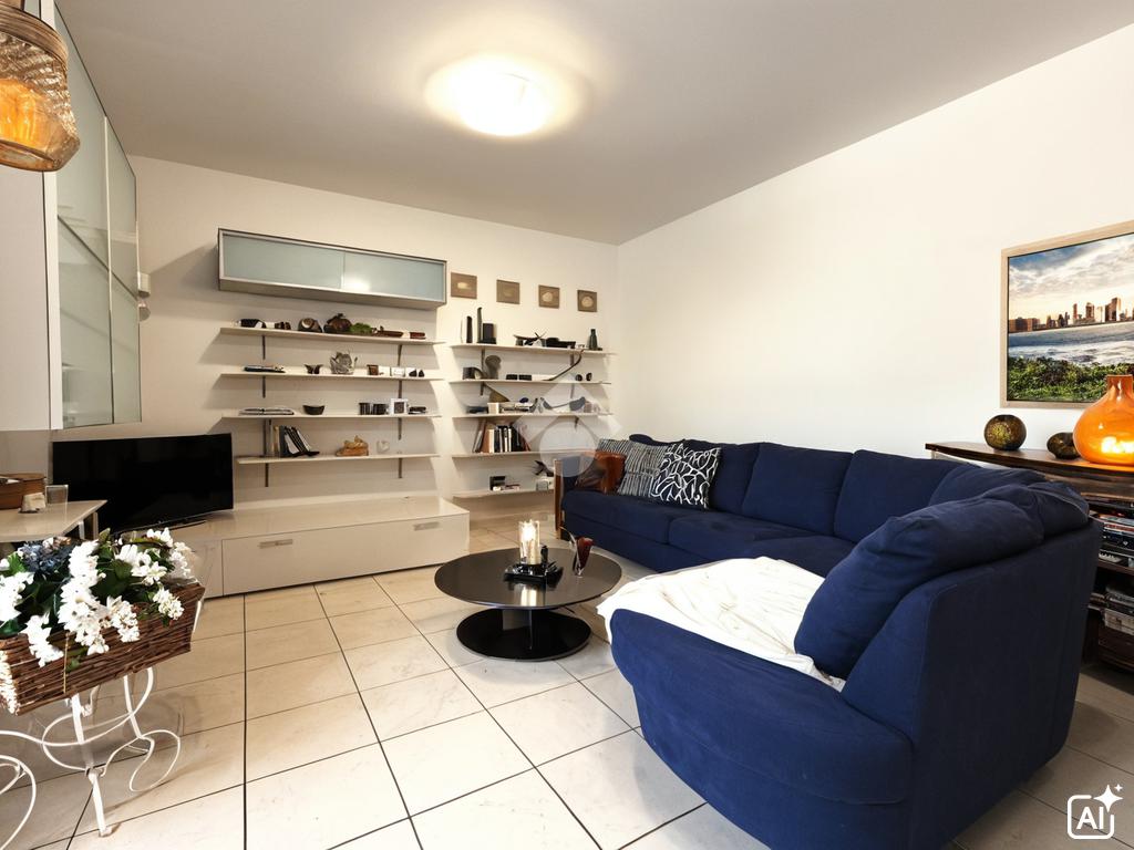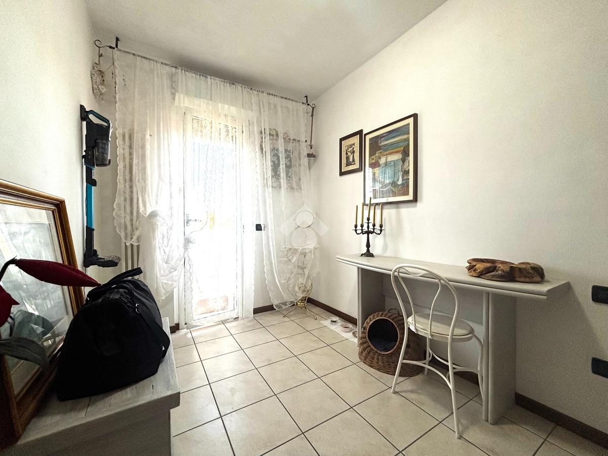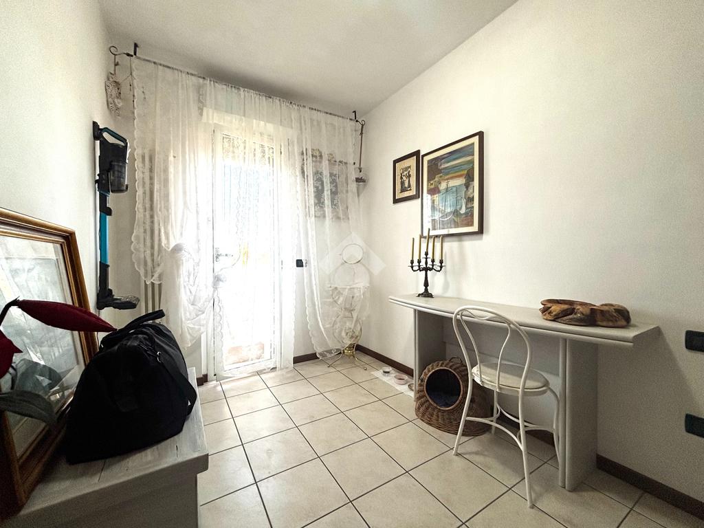 L'abitazione, rifinita in maniera moderna, accoglie in un soggiorno con angolo cottura a vista, arricchito da un con affaccio su un balcone e con accesso allo studio.