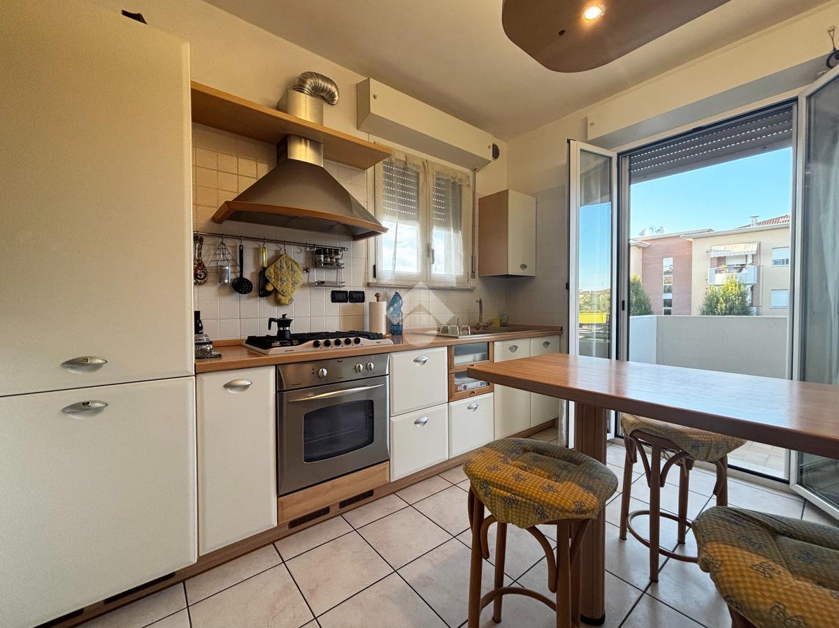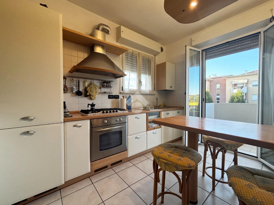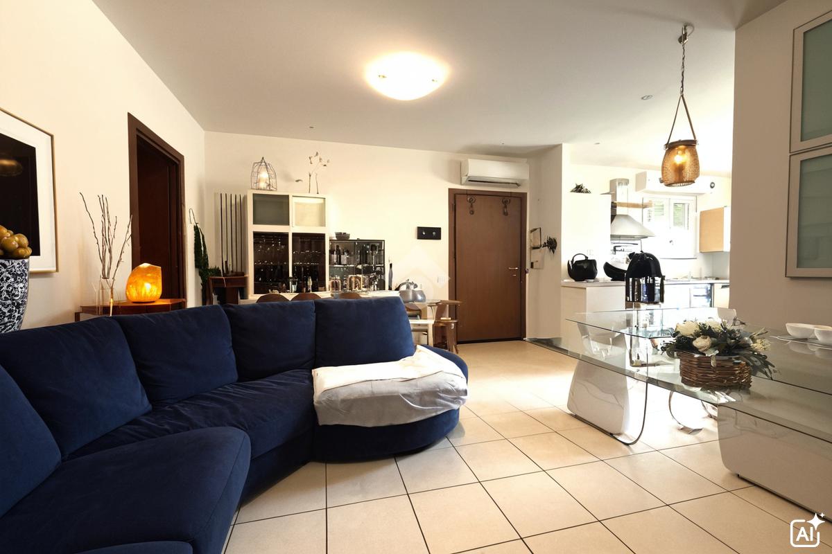 L'abitazione, rifinita in maniera moderna, accoglie in un soggiorno con angolo cottura a vista, arricchito da un con affaccio su un balcone e con accesso allo studio.