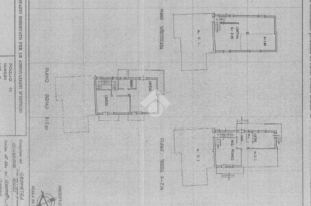 La scala in muratura, inoltre, ci accompagna anche al piano sottostrada dove possiamo trovare una cantina di circa 70 mq.
