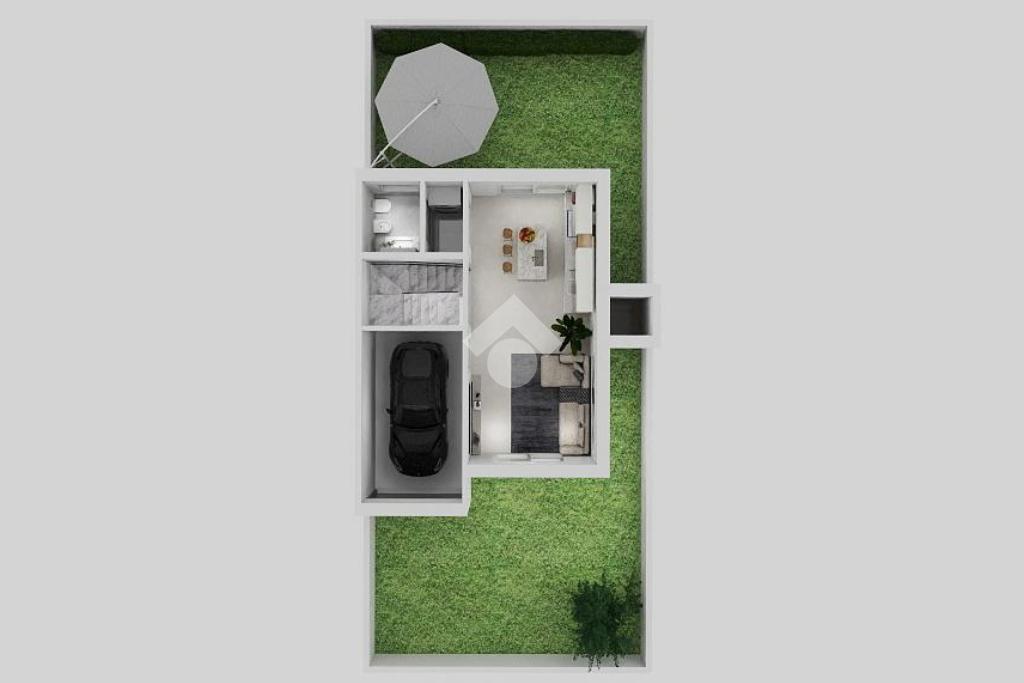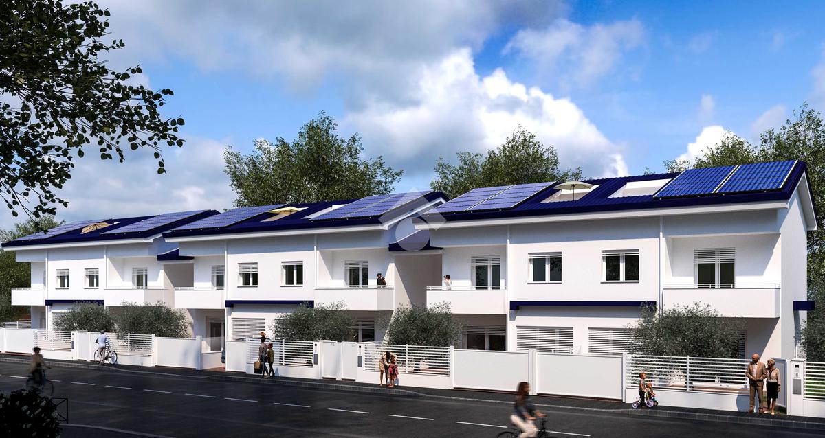 A poca distanza al centro del paese, in contesto residenziale caratterizzato per la sua tranquillità e vicinanza a tutti i principali servizi, villetta a schiera di NUOVA COSTRUZIONE, libera su tre lati, disposta su due livelli più sottotetto, completa di garage e ampio giardino privato.
