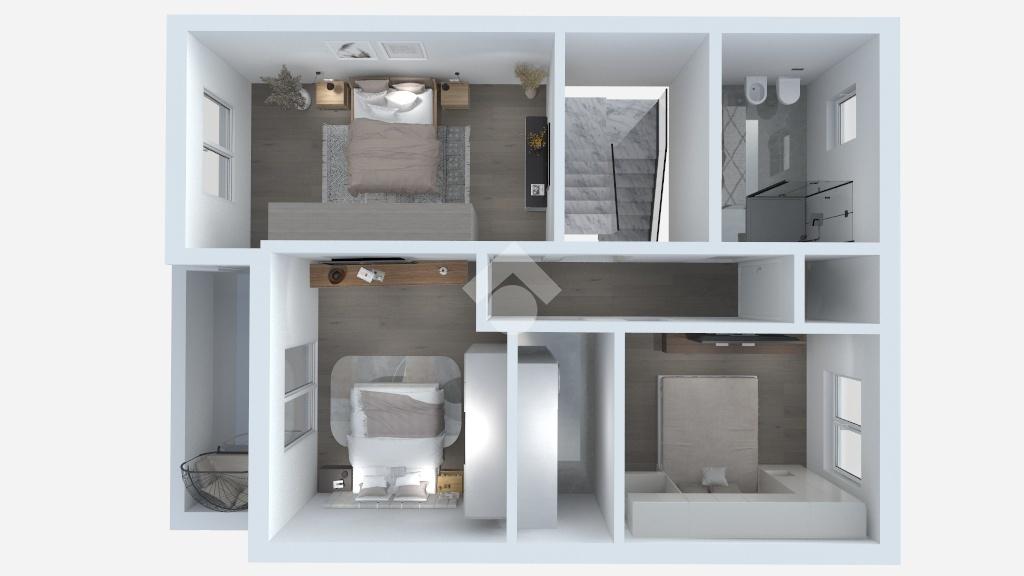 Una comoda scala accompagna al piano superiore, costituito da una camera matrimoniale, una camera doppia, una singola ed un bagno, sempre finestrato.